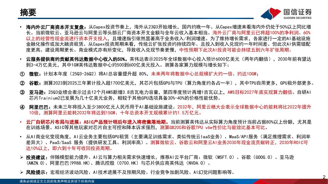 国信证券:海内外云厂商发展与现状(二):AI投入、算力建设梳理与ROI测算.pdf