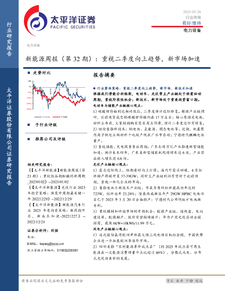 太平洋证券:新能源周报(第32期):重视二季度向上趋势,新市场加速.pdf