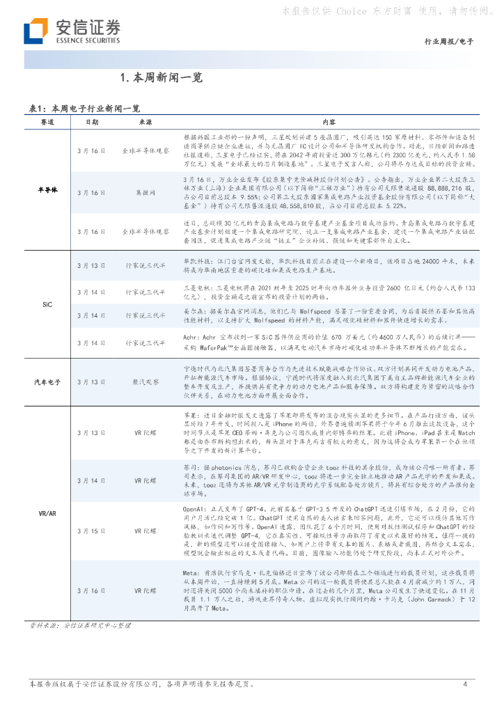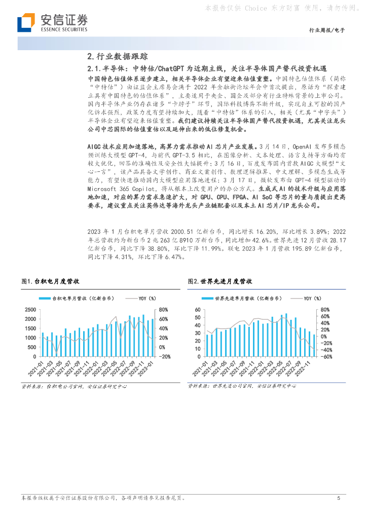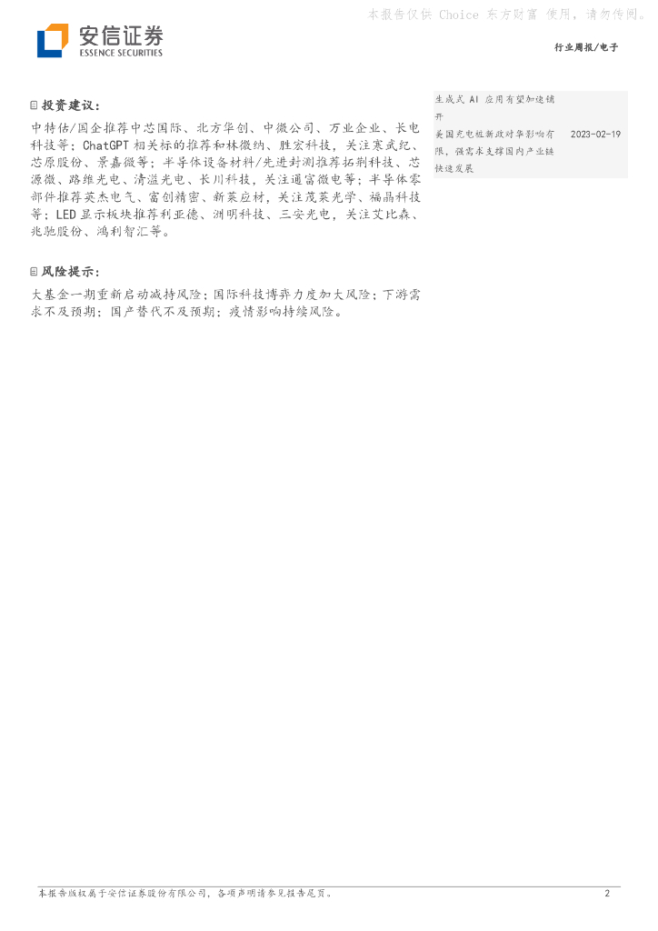 安信证券:电子行业周报:半导体瓶颈环节有望迎来价值重估,AIGC持续拉动算力需求.pdf