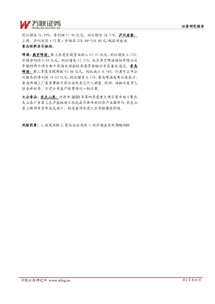 万联证券:食品饮料行业周观点:三季报业绩增长稳健,板块强势反弹.pdf