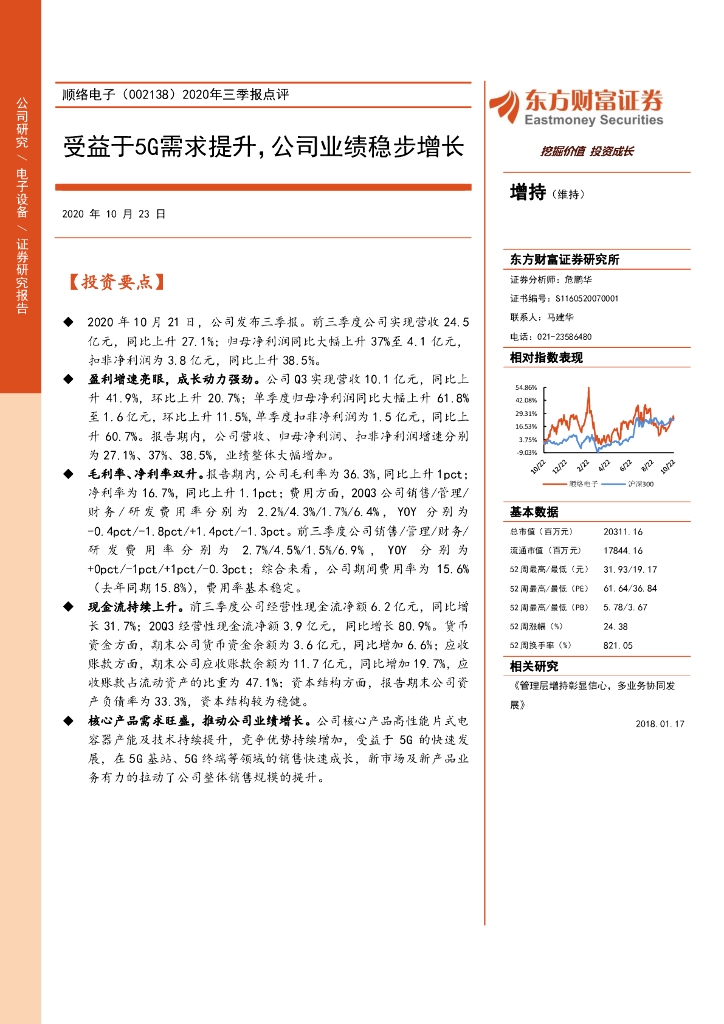 东方财富证券:顺络电子(002138)-2020年三季报点评:受益于5G需求提升,公司业绩稳步增长.pdf