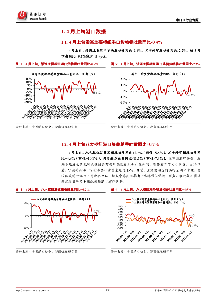 浙商证券:港口行业专题报告:4月上旬枢纽港外贸箱吞吐同比+4.9%,关注龙头港口一季度业绩增长.pdf