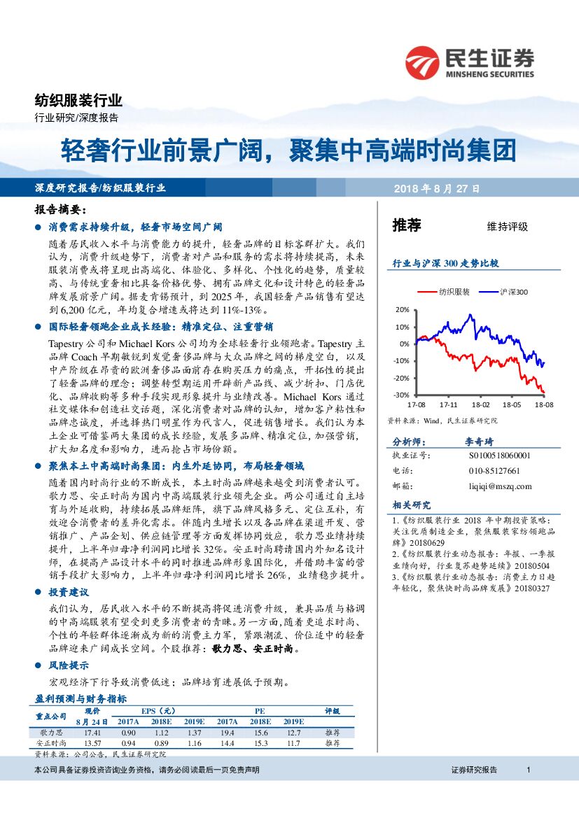 民生证券:纺织服装行业深度报告:轻奢行业前景广阔,聚集中高端时尚集团.pdf
