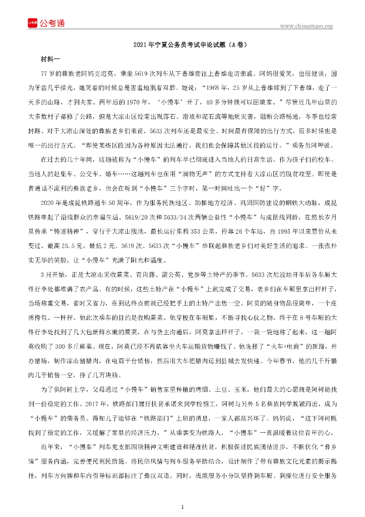 2021年宁夏公务员考试申论试题(A卷).pdf