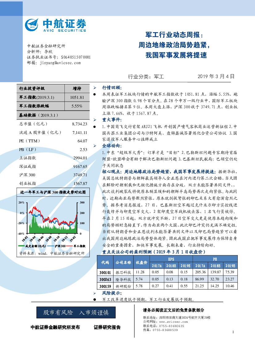 中航证券:军工行业动态周报:周边地缘政治局势趋紧,我国军事发展将提速.pdf