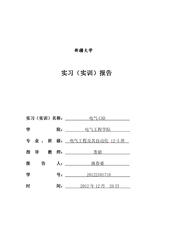 新疆某大学-电气 CAD实训报告.pdf
