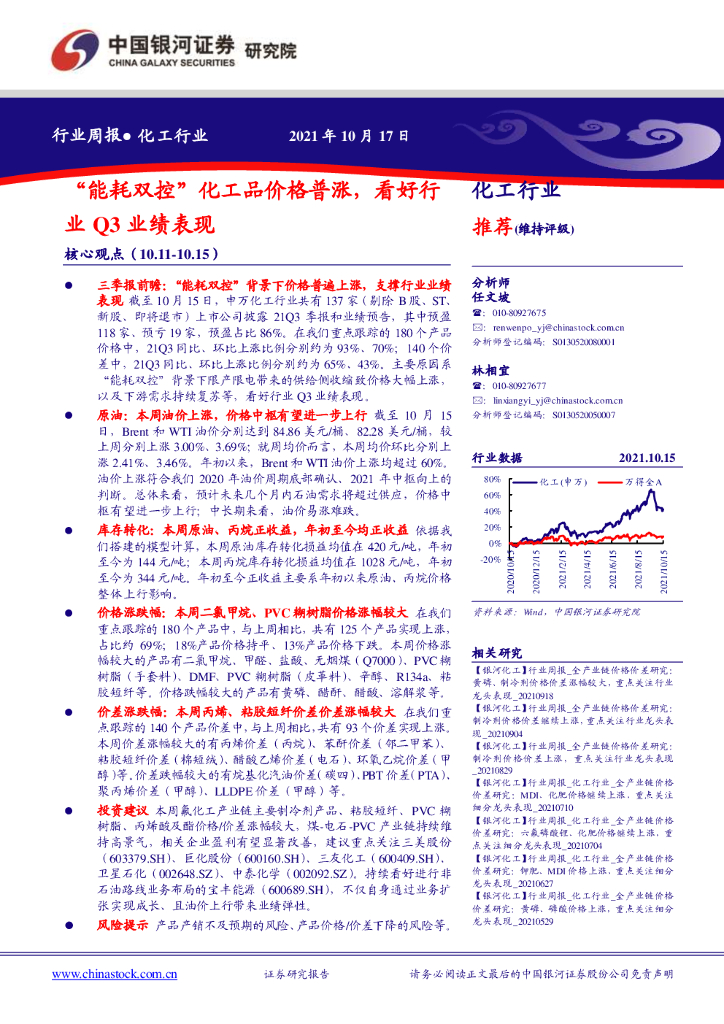 中国银河:化工行业周报:“能耗双控”化工品价格普涨,看好行业Q3业绩表现.pdf