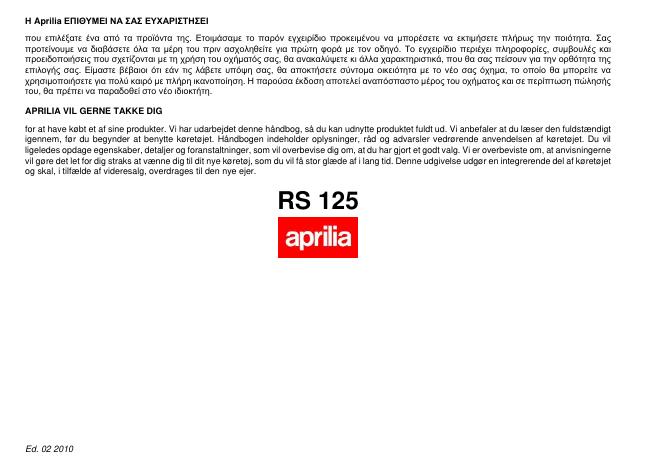 aprilia RS 125 Euro2 GR-DK MY2010 使用手册.pdf