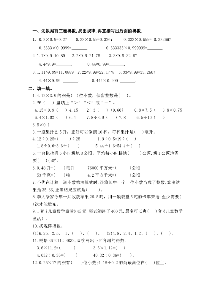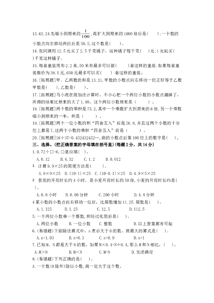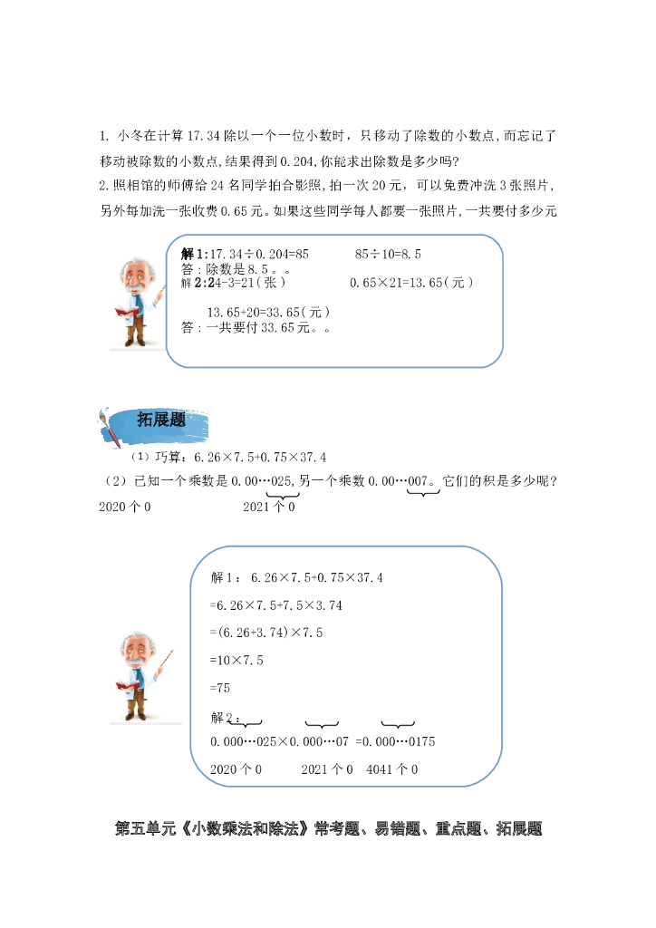 苏教版五年级数学上册第五单元《小数乘法和除法》名师详解与训练.doc