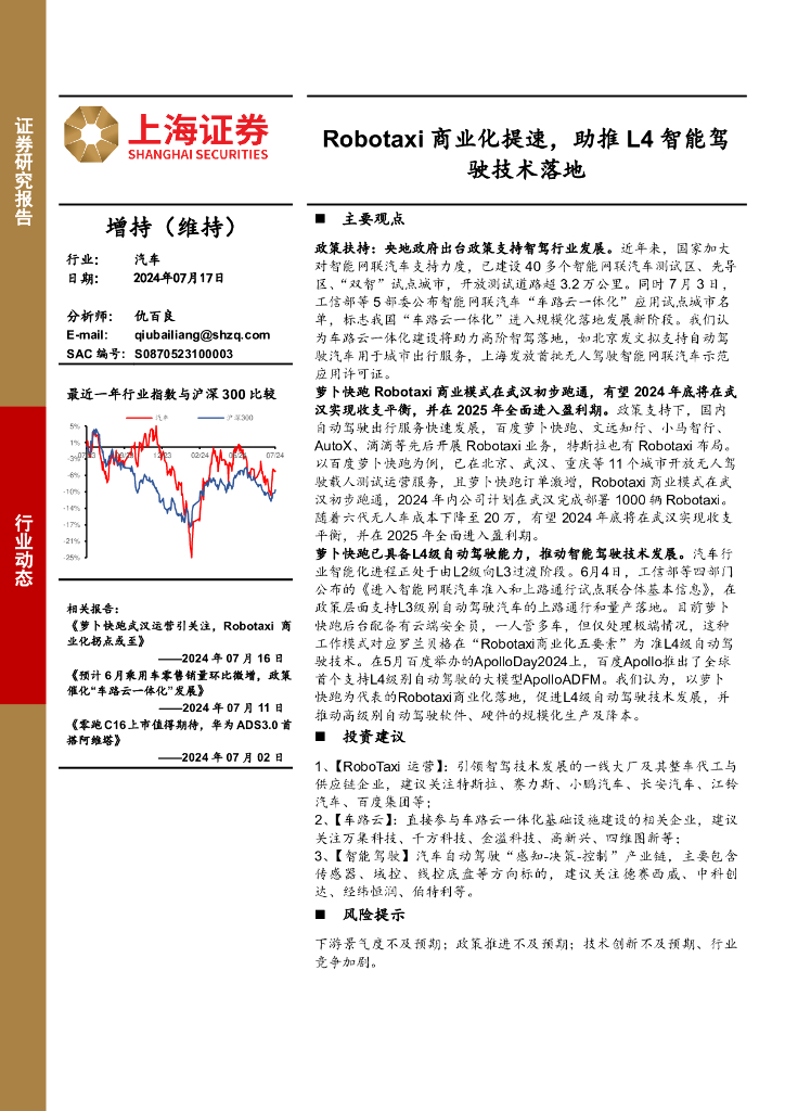 上海证券:汽车行业:Robotaxi商业化提速,助推L4智能驾驶技术落地.pdf