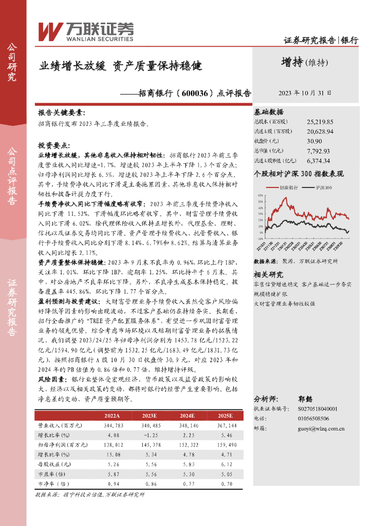 万联证券:招商银行(600036)-点评报告:业绩增长放缓,资产质量保持稳健.pdf