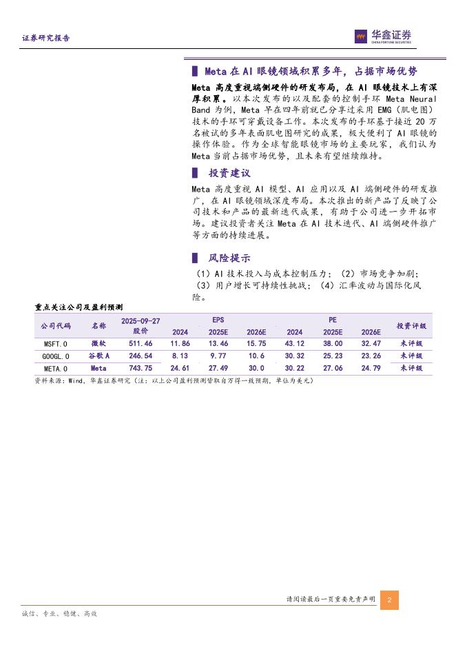 华鑫证券:计算机行业点评报告:Meta:发布AI眼镜及配套手环,端侧业务发展潜力较大.pdf
