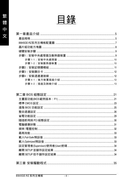 技嘉 8I845GE-RZ / 8I845GE-RZ-C 使用手冊 Intel Pentium 4處理器主機板.pdf