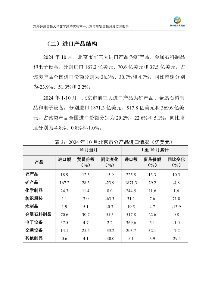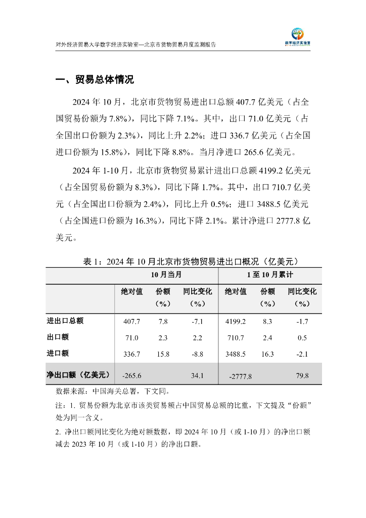 对外经济贸易大学:北京市货物贸易月度监测报告(2024年1-10月).pdf