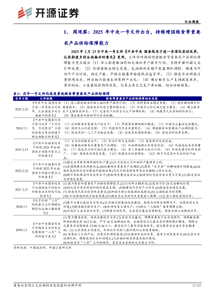 开源证券:农林牧渔行业周报:2025年中央一号文件出台,持续增强粮食等重要农产品供给保障能力.pdf
