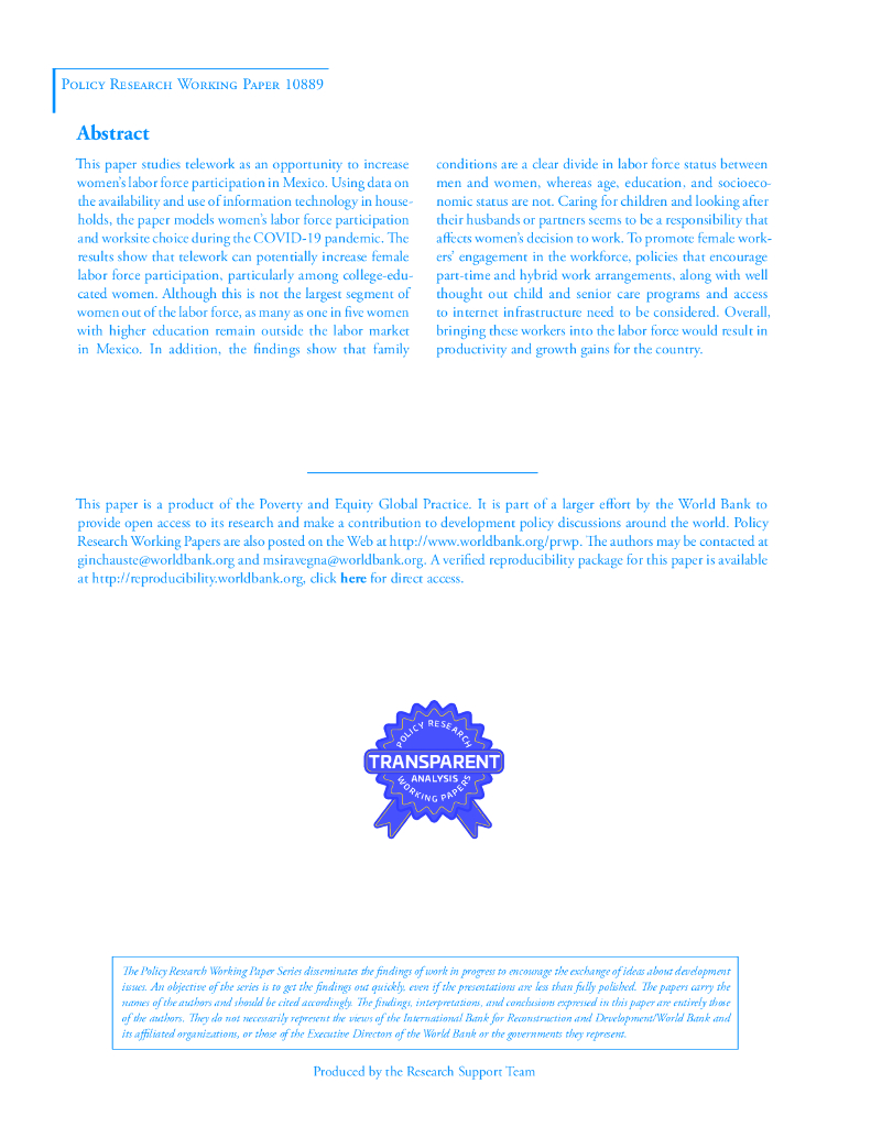 世界银行:远程办公的主要决定因素及其在女性劳动力参与中的作用(英文版).pdf
