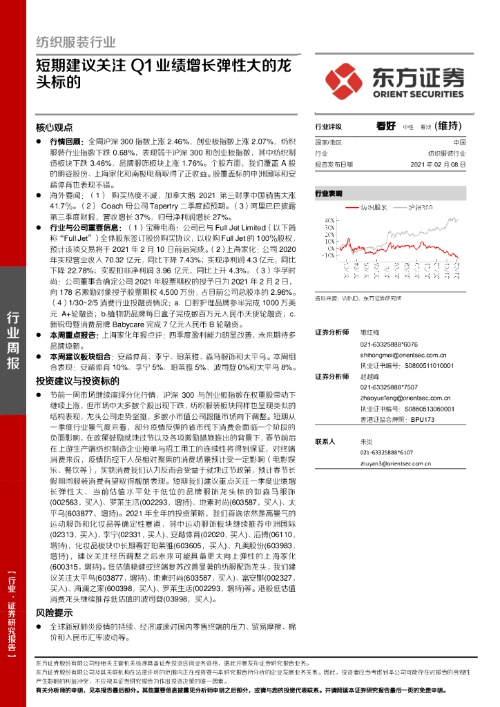 东方证券:纺织服装行业周报:短期建议关注Q1业绩增长弹性大的龙头标的.pdf
