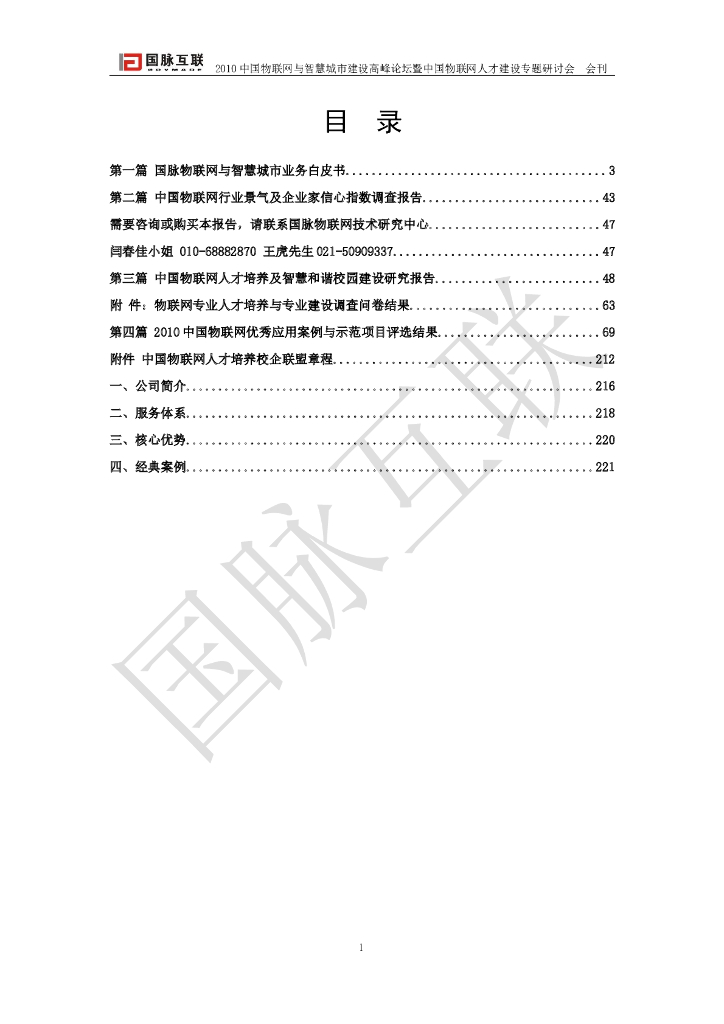 国脉电子政务网:2010中国物联网与智慧城市建设高峰论坛暨中国物联网人才建设专题研讨会会刊.doc