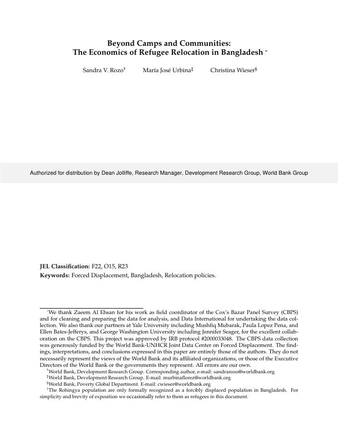 世界银行:超越营地和社区:孟加拉国难民搬迁的经济学(英文版).pdf