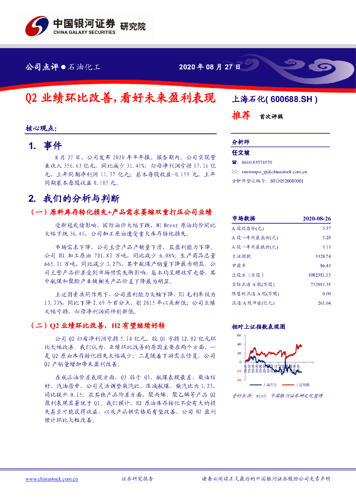 中国银河:上海石化(600688)-Q2业绩环比改善,看好未来盈利表现.pdf