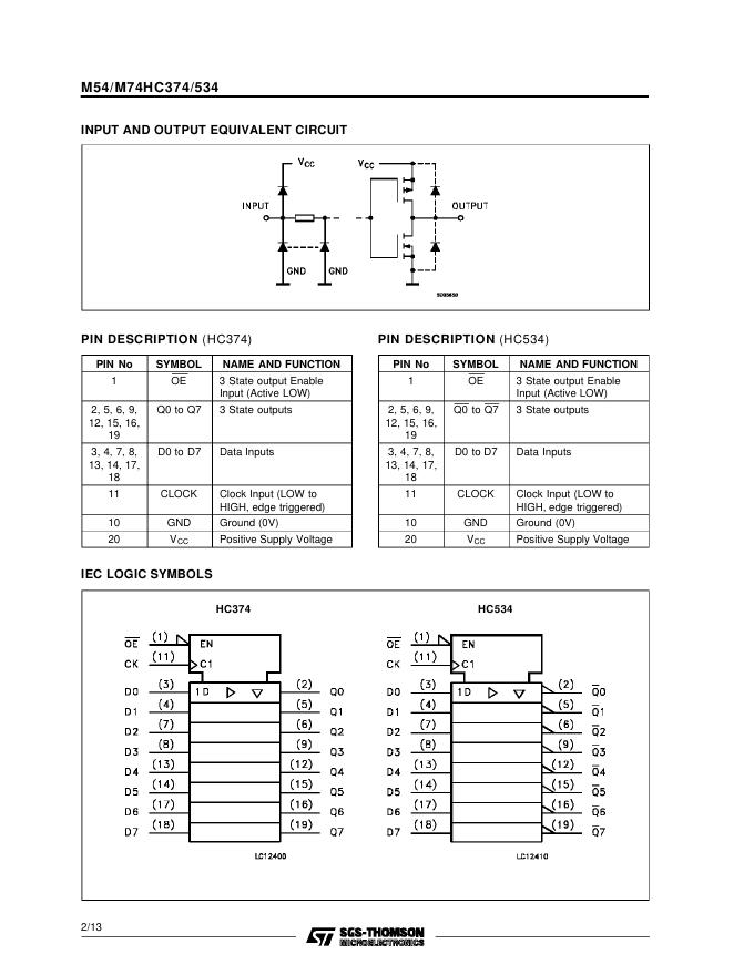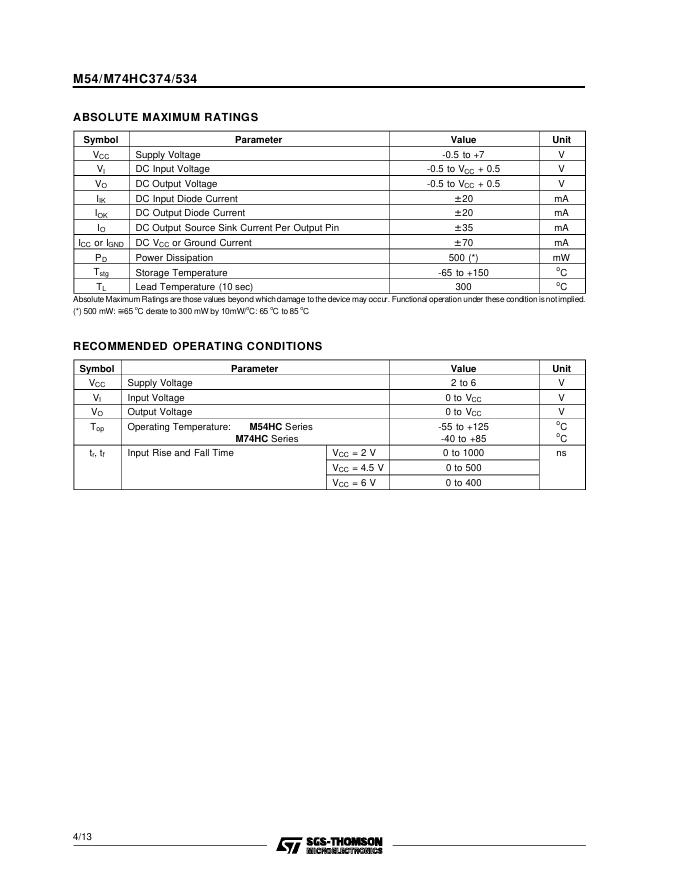 SGS-THOMSON M5 4 /7 4HC3 7 4 M54/74HC534 March 1993 HC374 NON INVERTING - HC534 INVERTING OCTAL D-TYPE FLIP FLOP WITH 3 STATE OUTPUT 数据手册.pdf