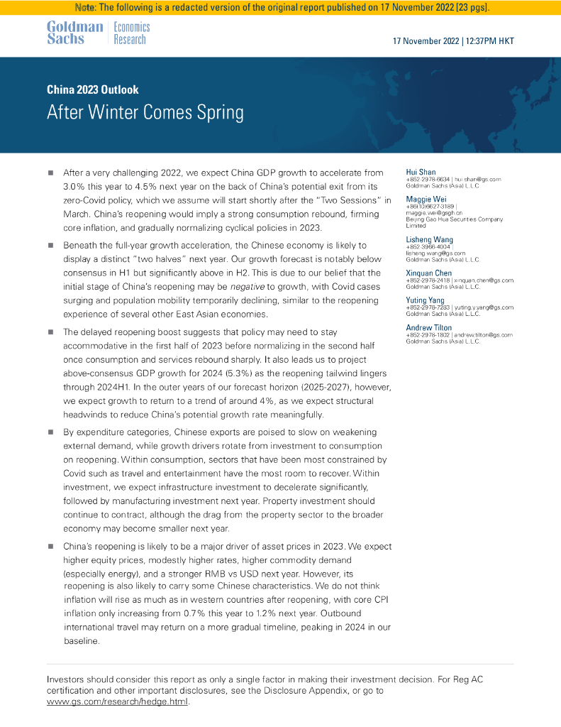 高盛:2023中国宏观经济和股市策略:冬去春来(英文版).pdf