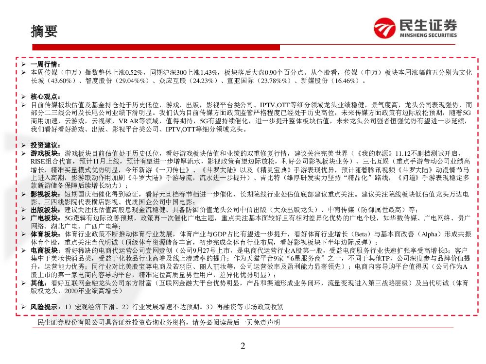民生证券:民生传媒周报:三季报业绩分化关注龙头,双十一预售火爆看好电商产业链.pdf