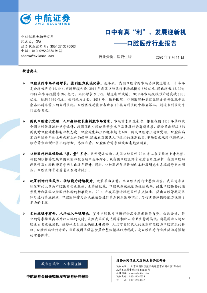 中航证券:口腔医疗行业报告:口中有真“利”,发展迎新机.pdf