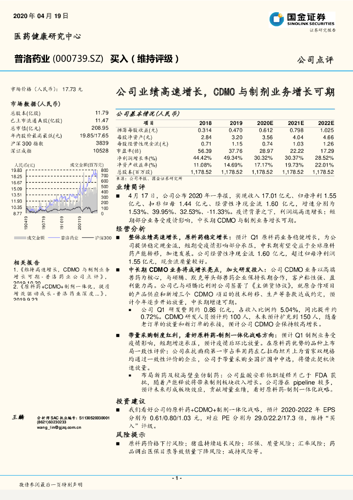 国金证券:普洛药业(000739)-公司业绩高速增长,CDMO与制剂业务增长可期.pdf
