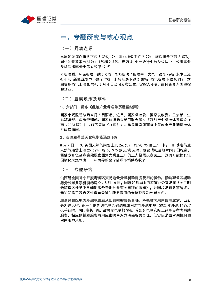 国信证券:公用环保202308第2期:山西、山东完善辅助服务相关政策,欧洲天然气价格大涨.pdf