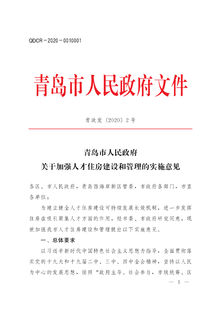 青岛市人民政府关于加强人才住房建设和管理的实施意见.pdf