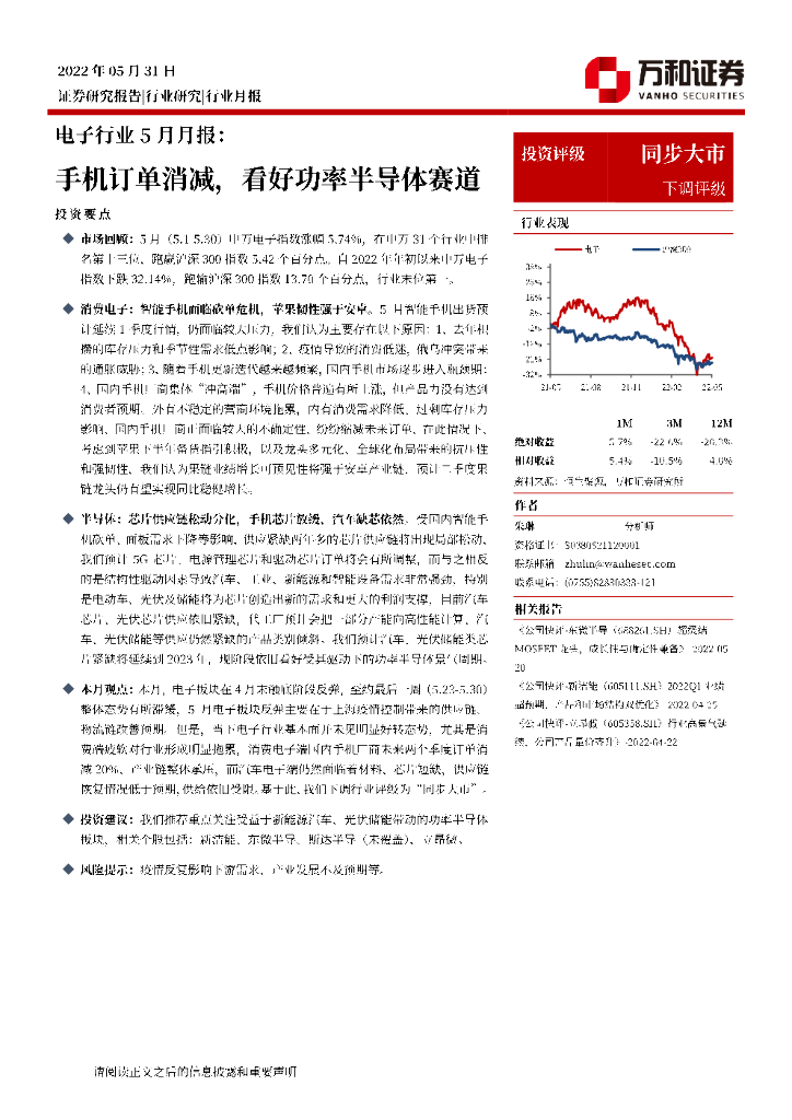 万和证券:电子行业5月月报:手机订单消减,看好功率半导体赛道.pdf