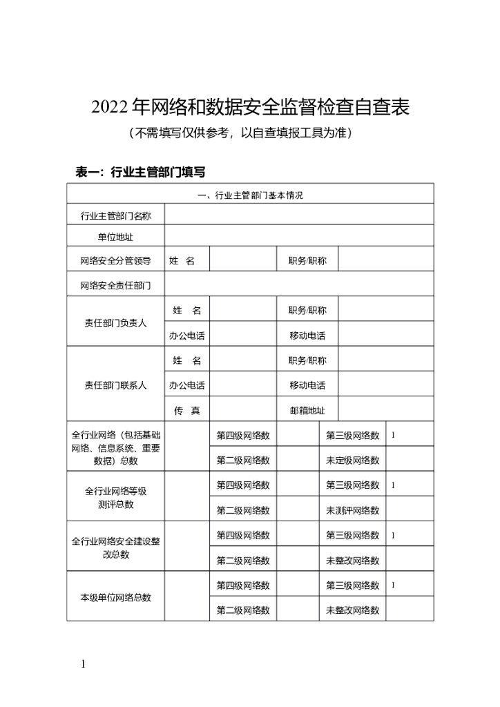 2022年网络和数据安全监督检查自查表及填报说明.doc