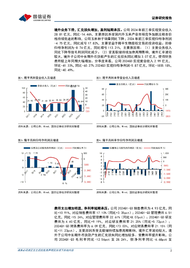 国信证券:隆平高科(000998)-2024三季报点评:境外业务下滑,汇兑损失增加,盈利短期承压.pdf
