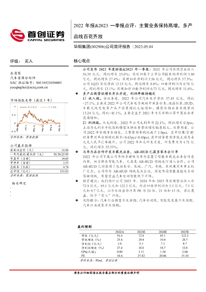 首创证券:华阳集团(002906)-2022年报&2023一季报点评:主营业务保持高增,多产品线百花齐放.pdf