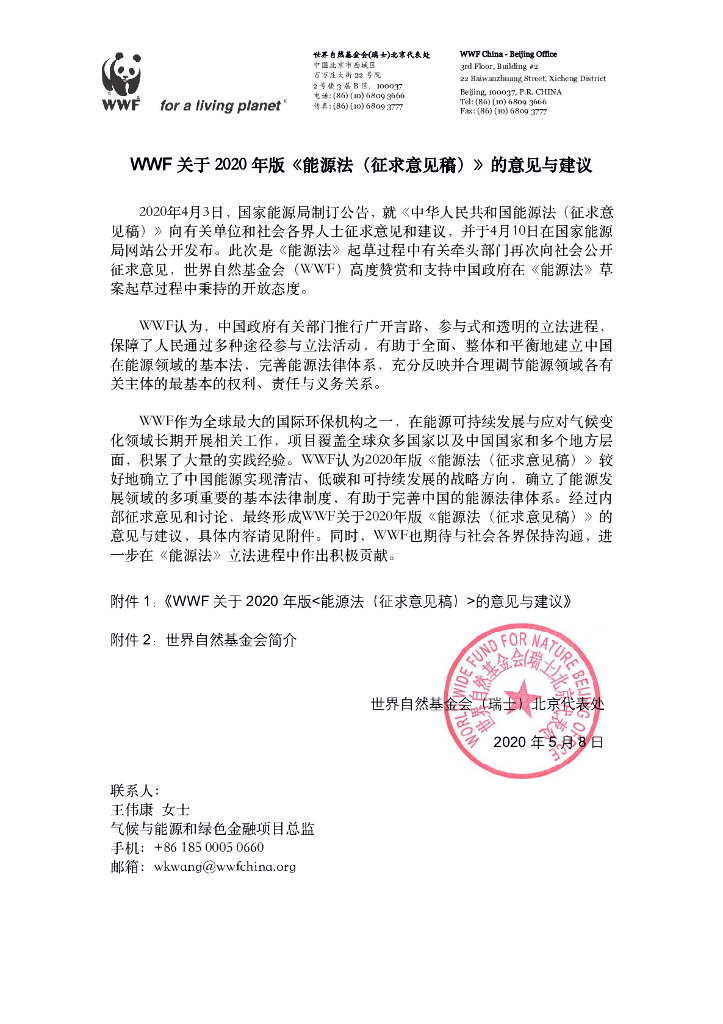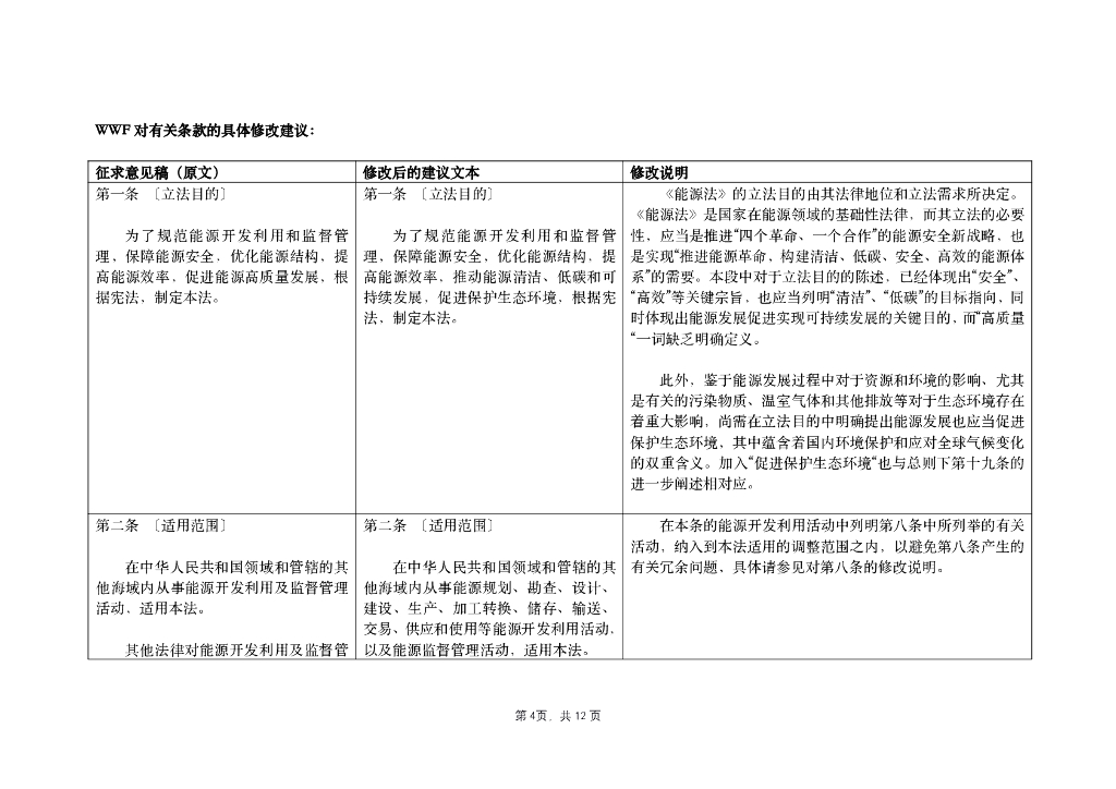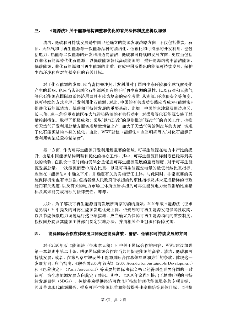 世界自然基金会:WWF关于2020年版《能源法(征求意见稿)》的意见与建议.pdf