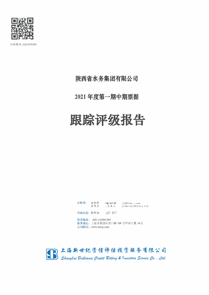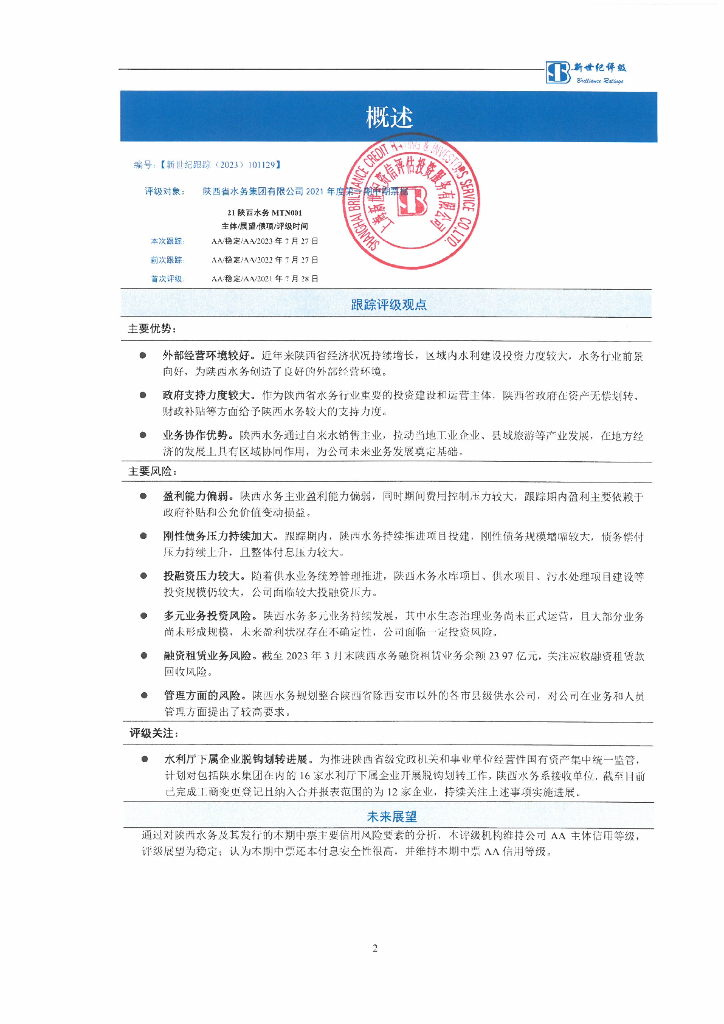 新世纪:陕西省水务集团有限公司2021年度第一期中期票据跟踪评级报告.pdf