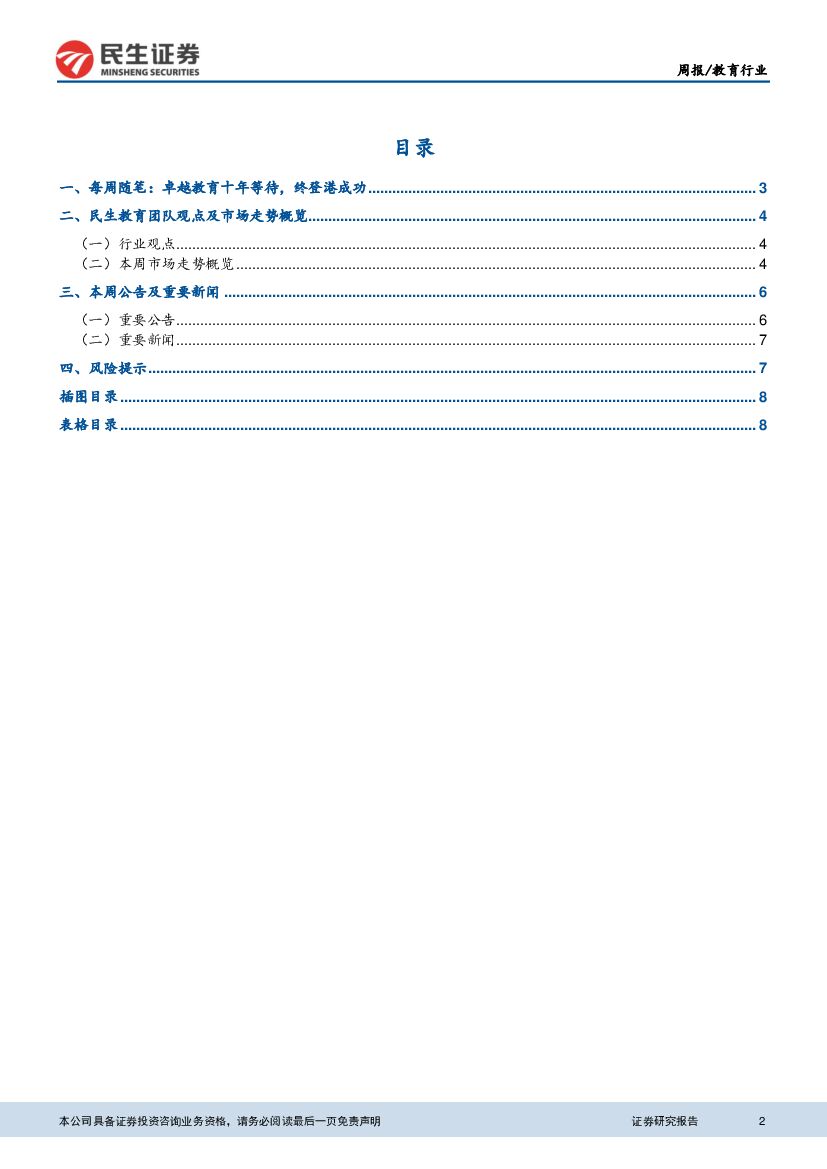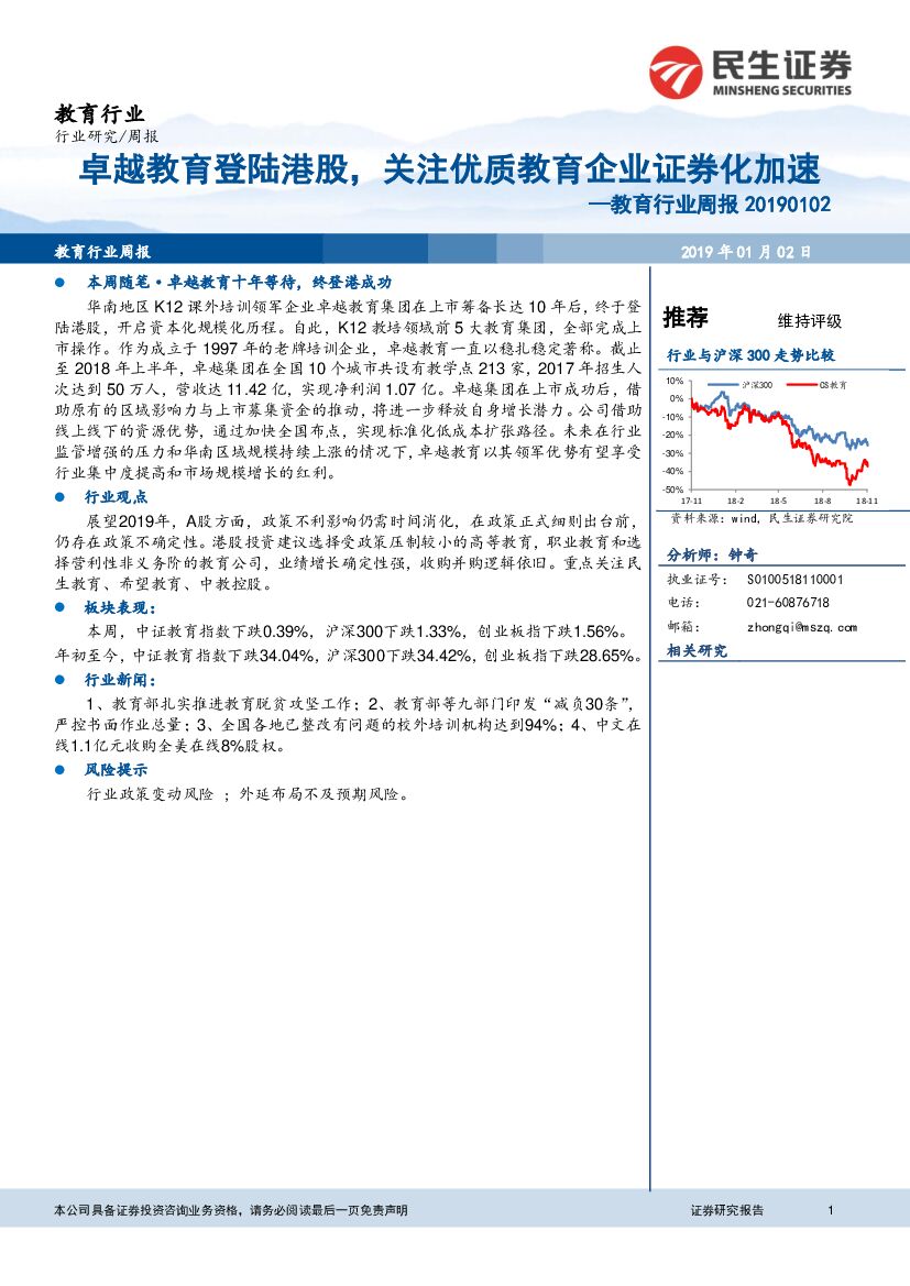 民生证券:教育行业周报:卓越教育登陆港股,关注优质教育企业证券化加速.pdf