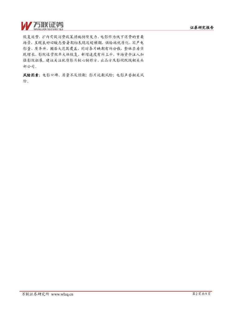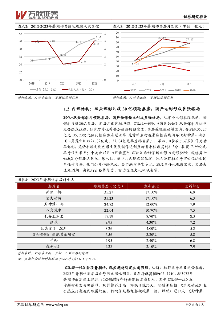 万联证券:传媒行业跟踪报告:暑期档表现超预期,影片供给端优质化趋势显著.pdf