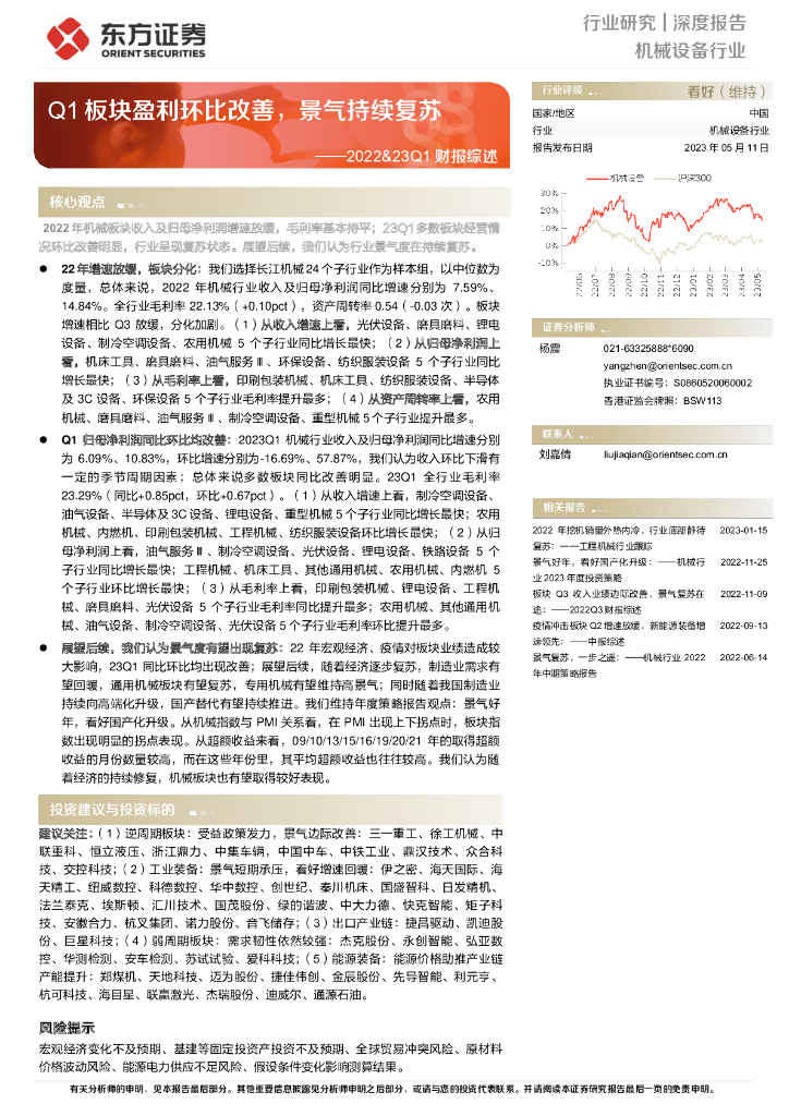 东方证券:机械设备行业深度报告:2022&23Q1财报综述-Q1板块盈利环比改善,景气持续复苏.pdf