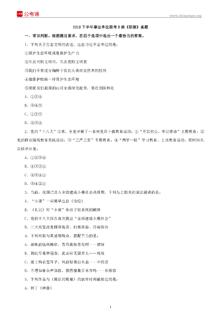 2019下半年事业单位联考B类《职业能力倾向测验》真题.pdf