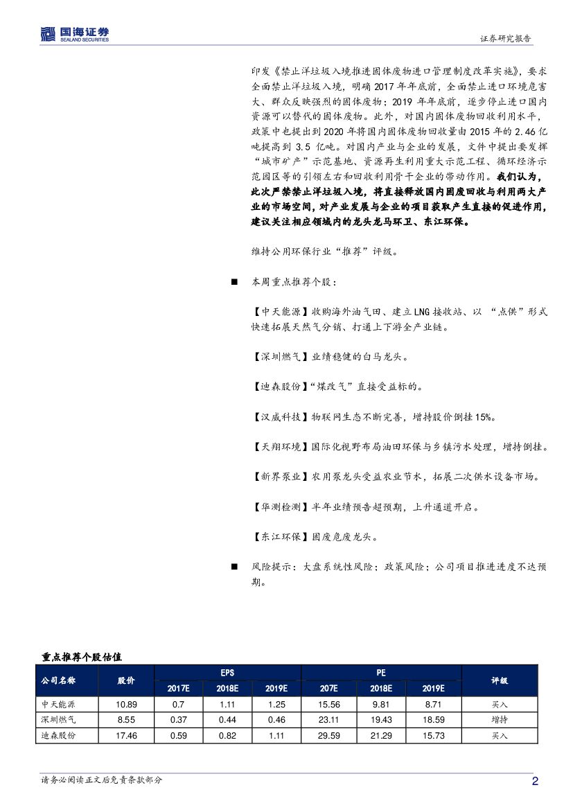 国海证券:公用环保行业周报:下半年环保督查再趋严,第三批14省完成输配电价核定.pdf