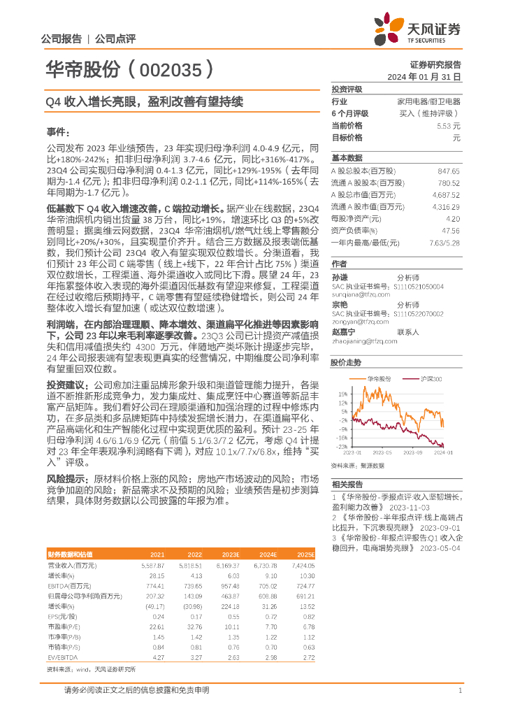 天风证券:华帝股份(002035)-Q4收入增长亮眼,盈利改善有望持续.pdf