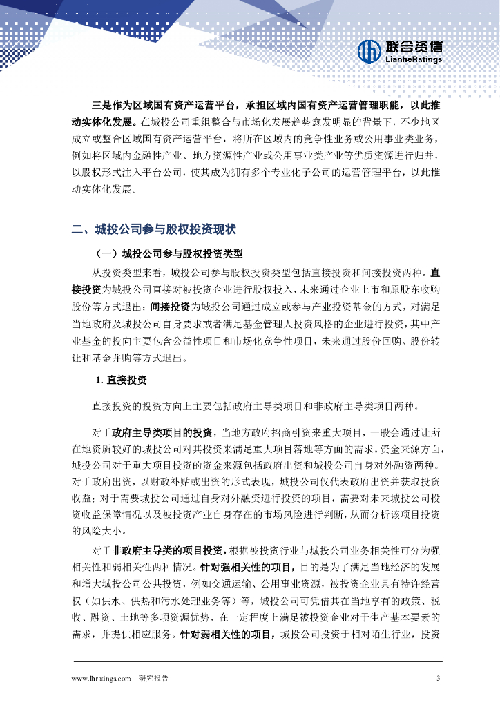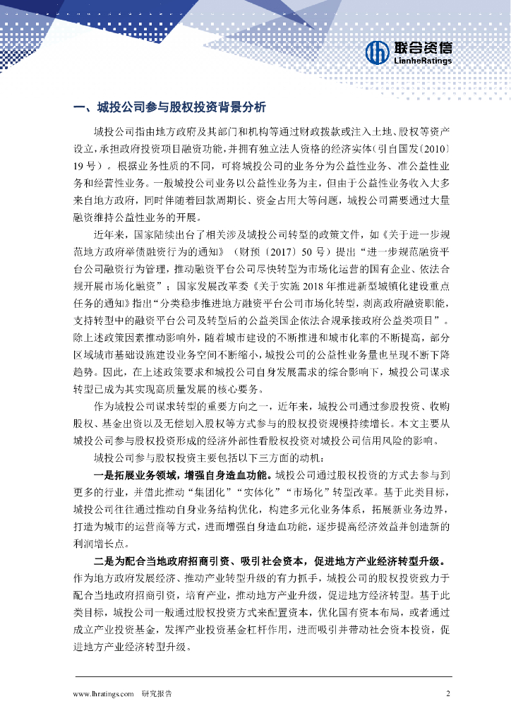 联合资信:城投公司股权投资及其对信用风险的影响初探.pdf