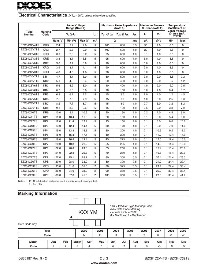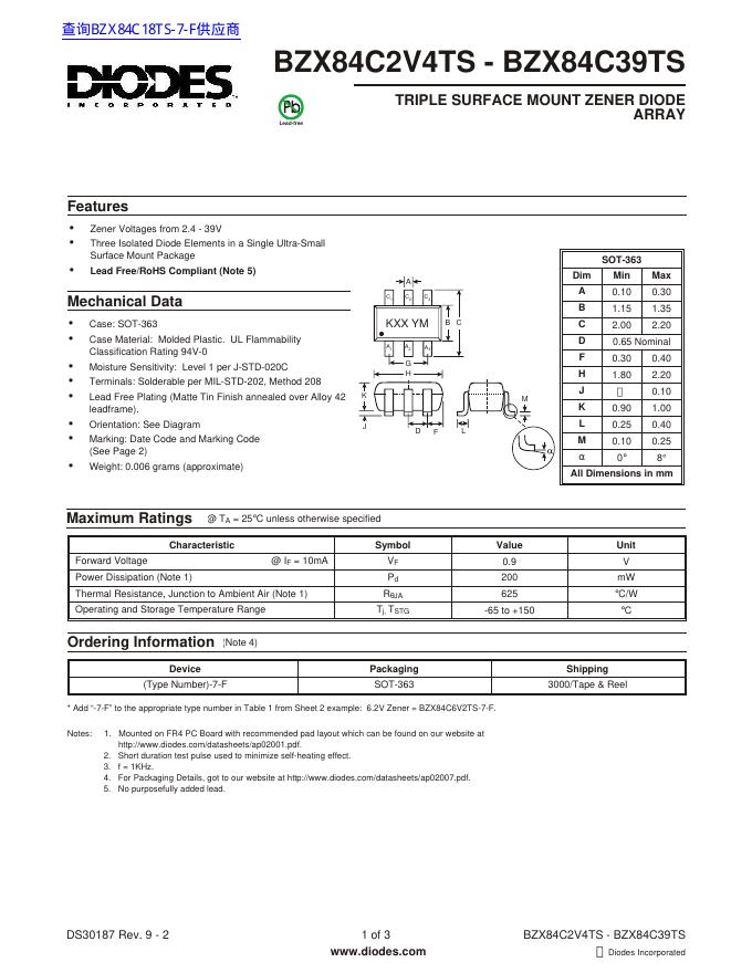 DIODES BZX84C2V4TS - BZX84C39TS 数据手册.pdf