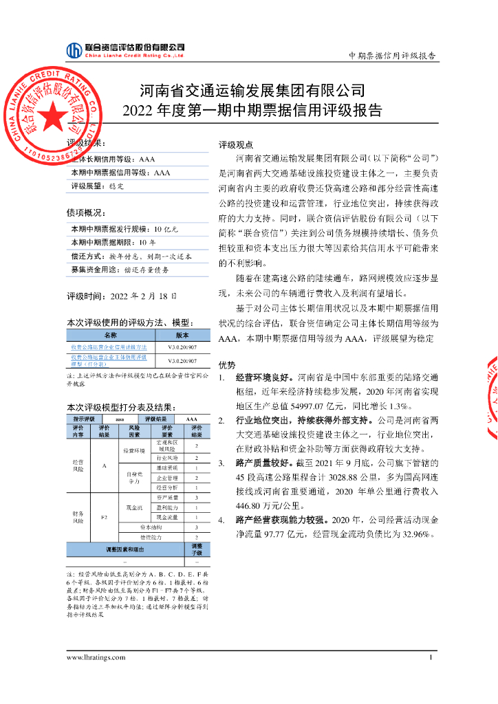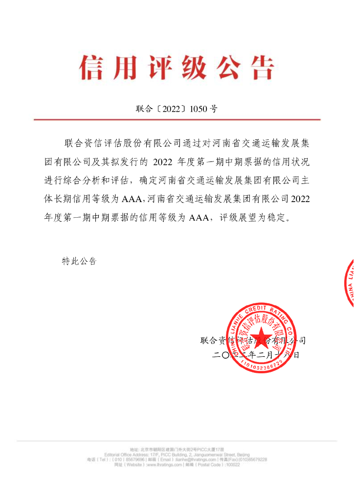 联合资信:河南省交通运输发展集团有限公司2022年度第一期中期票据信用评级报告.pdf