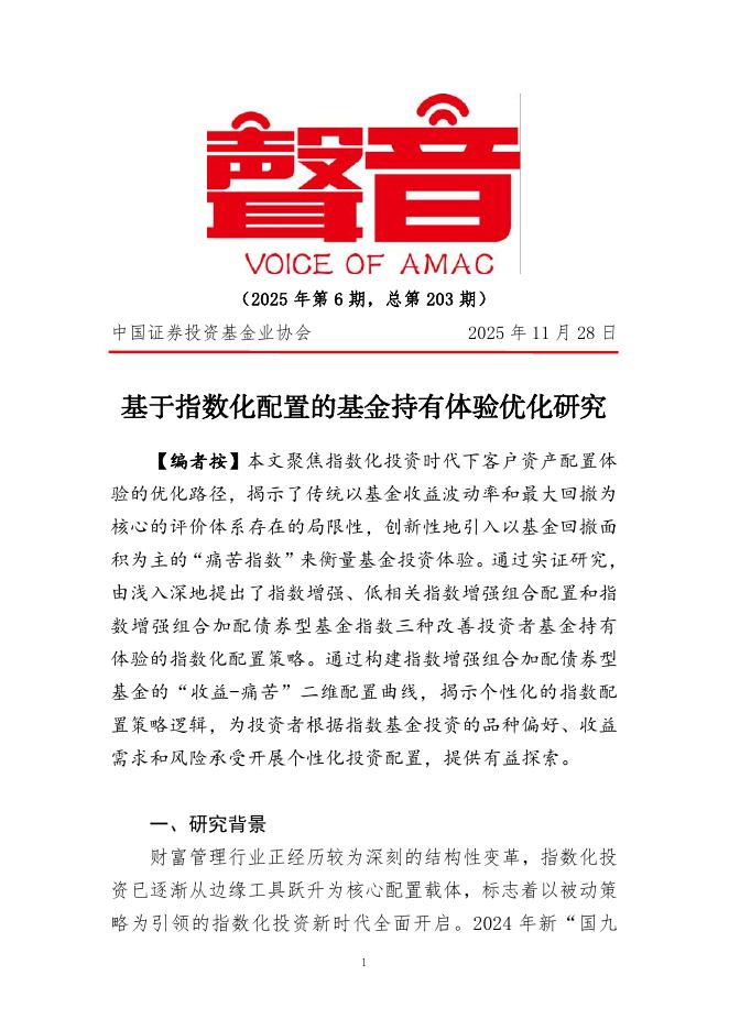 中国证券投资基金业协会:《声音》2025年第6期《基于指数化配置的基金持有体验优化研究》.pdf