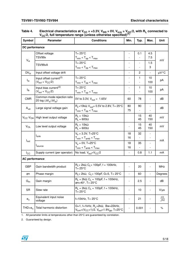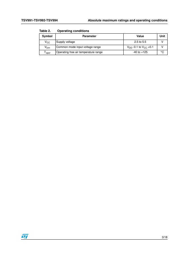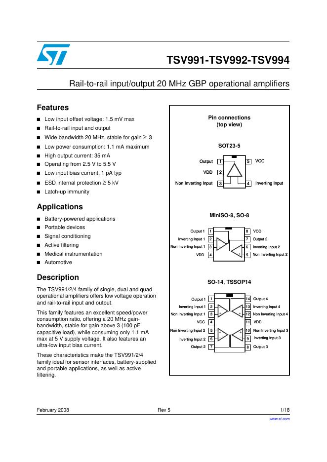 ST TSV991-TSV992-TSV994 Rail-to-rail input/output 20 MHz GBP operational amplifiers 数据手册.pdf