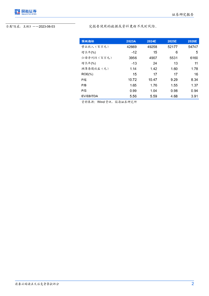 国元证券:江西铜业(600362)-首次覆盖报告:铜矿盈利能力提升,冶炼业务短期承压