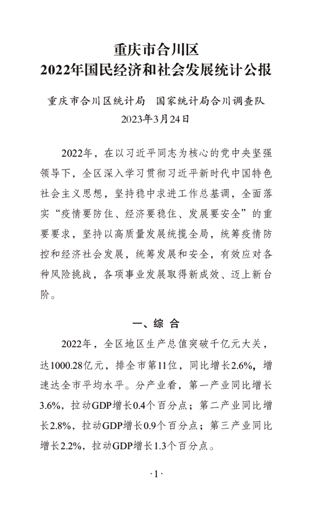 重庆市合川区2022年国民经济和社会发展统计公报.pdf